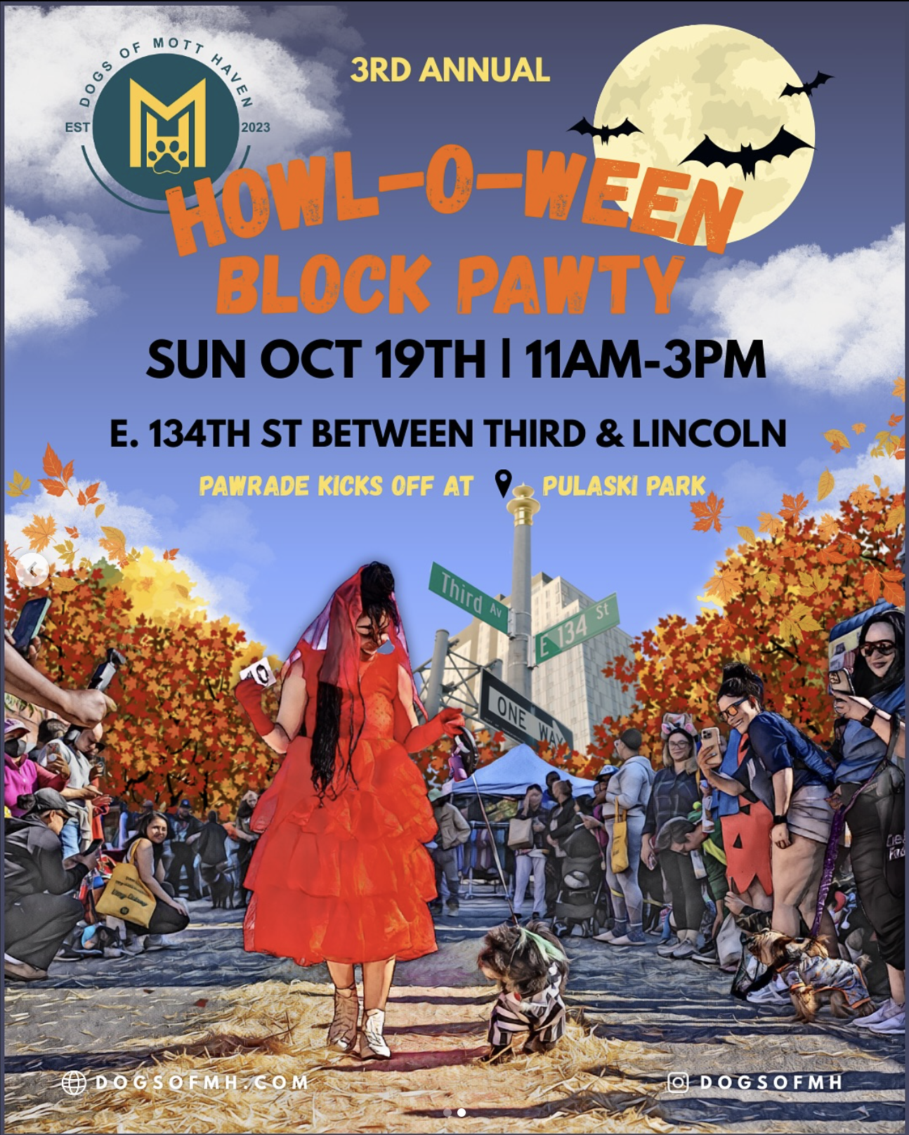 Dogs of Mott Haven invites you to our 3rd Annual Howl-O-Ween Block Pawty , Mott Haven's most talked-about dog-friendly celebration. The event kicks off with a community Doggy Pawrade and continues with music, vendors, and the highlight of the afternoon — our Costume Contest judged by special guests.