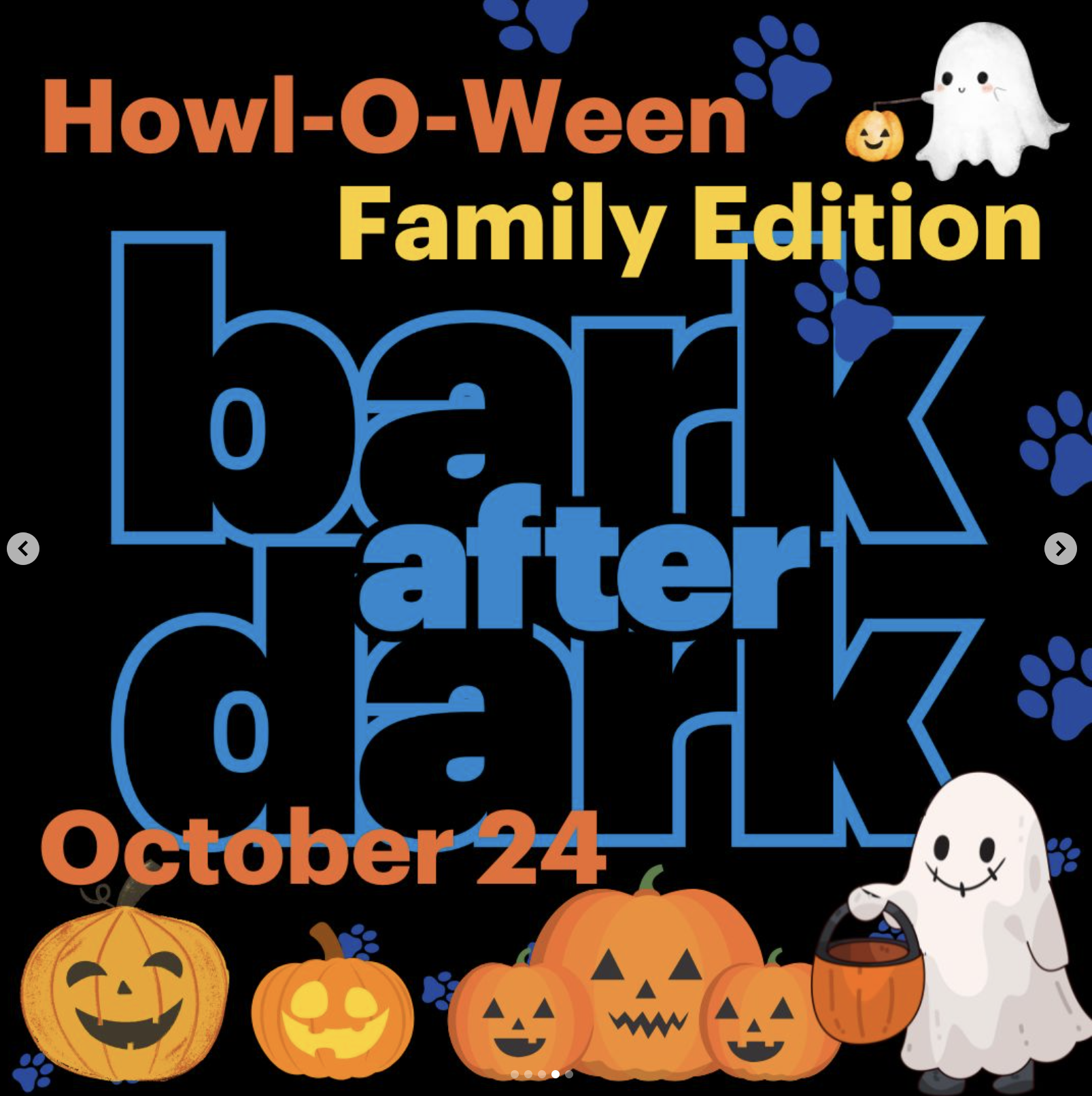 Join us for Bark After Dark: Family Edition! Secure your tickets for the WHOLE pack to join this family friendly version of our Bark After Dark Howl-O-Ween event. Costumes are encouraged and festive fall fun will be had by all.