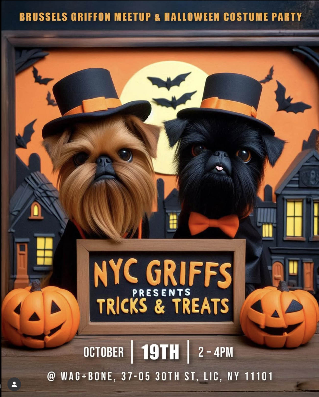 Who Can Attend:This event is exclusively for Brussels Griffons 🐾. Same-household pup siblings and Affenpinscher friends are also welcome. NYC has so many amazing dog Halloween events, but this one is dedicated to celebrating our Brussels Griffon community. Children under the age of 10 must be very closely supervised to prevent any injury to our furry friends.