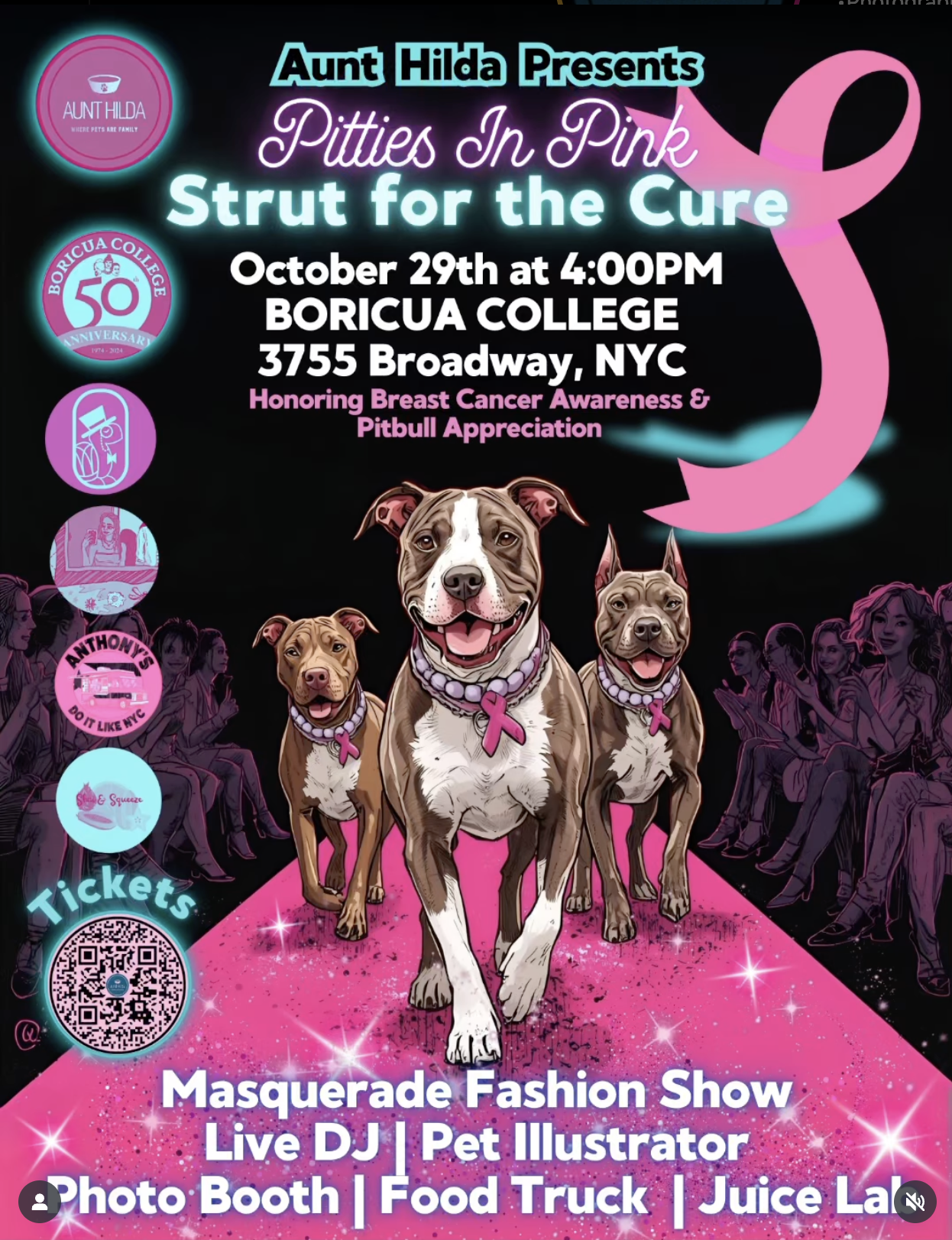 ๐พ Pups strutting the pink glitter runway in their fiercest pink looks ๐ Judged fashion show with paw-some prizes ๐๏ธ Emceed by the empowering @dailisha ๐ง Live DJ spinning the vibe by @dj9lives69_brf ๐ธ Live photo booth by @velvetturtleevents ๐น Refreshments at the juice Lab by @shaisqueeze ๐ฏ Food truck with authentic Puerto Rican food ๐จ Custom pet illustrations by @artexanateresa ๐ช delectable custom treats by the one and only @dantespawfecttreats ๐ถโโ๏ธ Moment of silence walk to honor those weโve lost ๐ ๐ฉธ Information booth by @newyorkbloodcenter ๐ Plus โ the Boricua College Enrollment Team will be all hands on deck, ready to answer your questions about admissions, programs, and how to take the next step in your education!